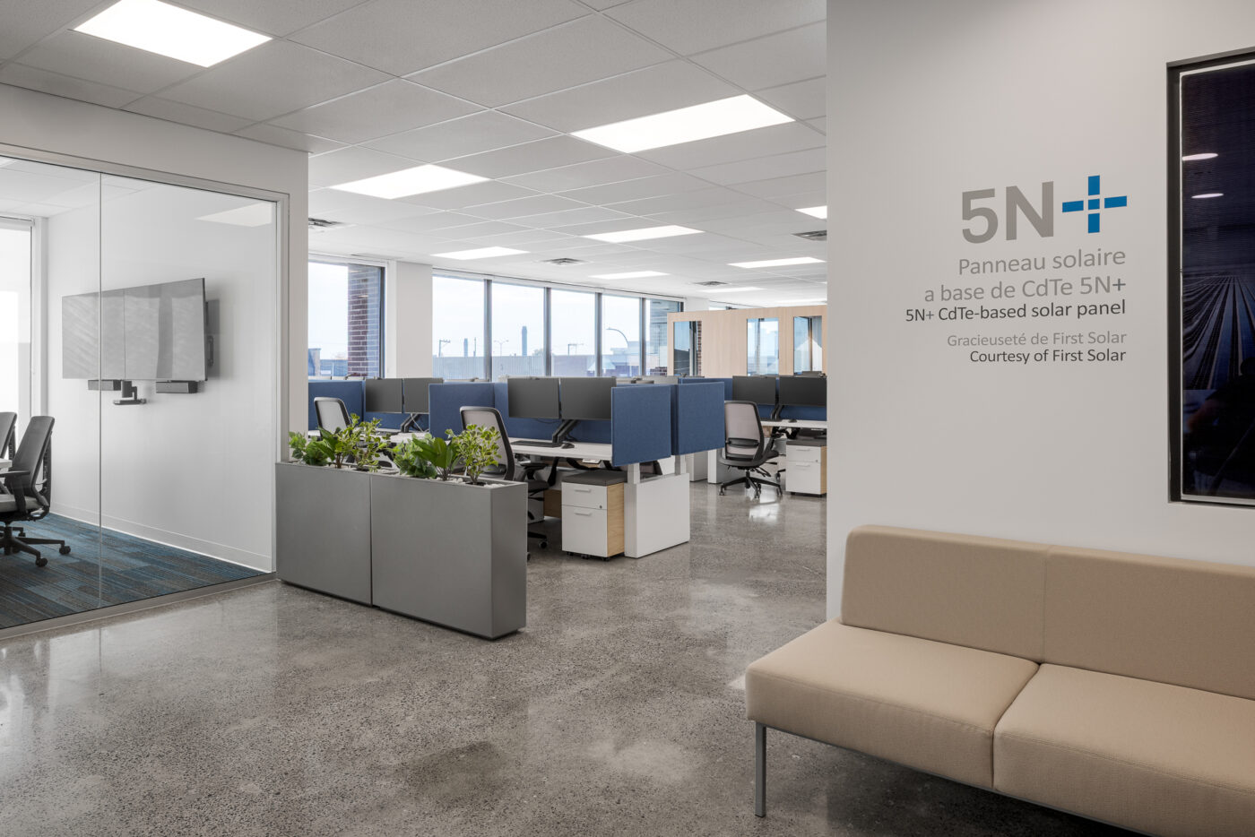 5N Plus had acquired a new office building directly adjacent to their existing factory and office facilities. Their goal was to transform the space into a cohesive extension of their operations.